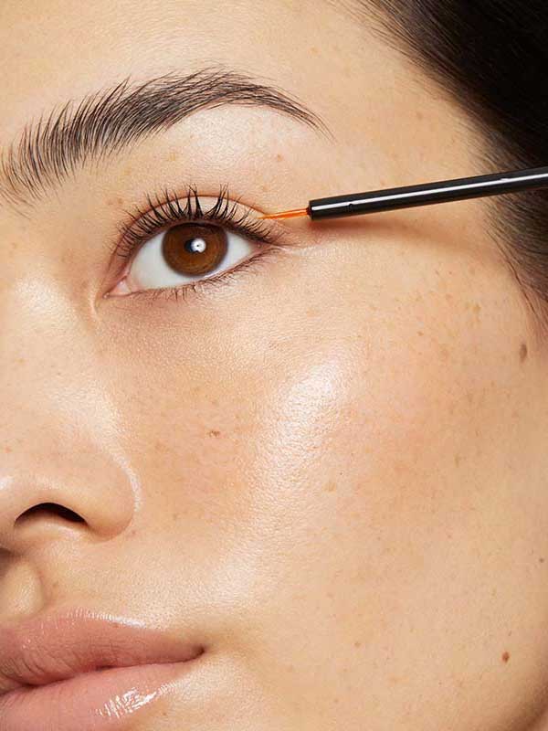Sweep applicator brush along the lash line in the same manner as liquid eyeliner.