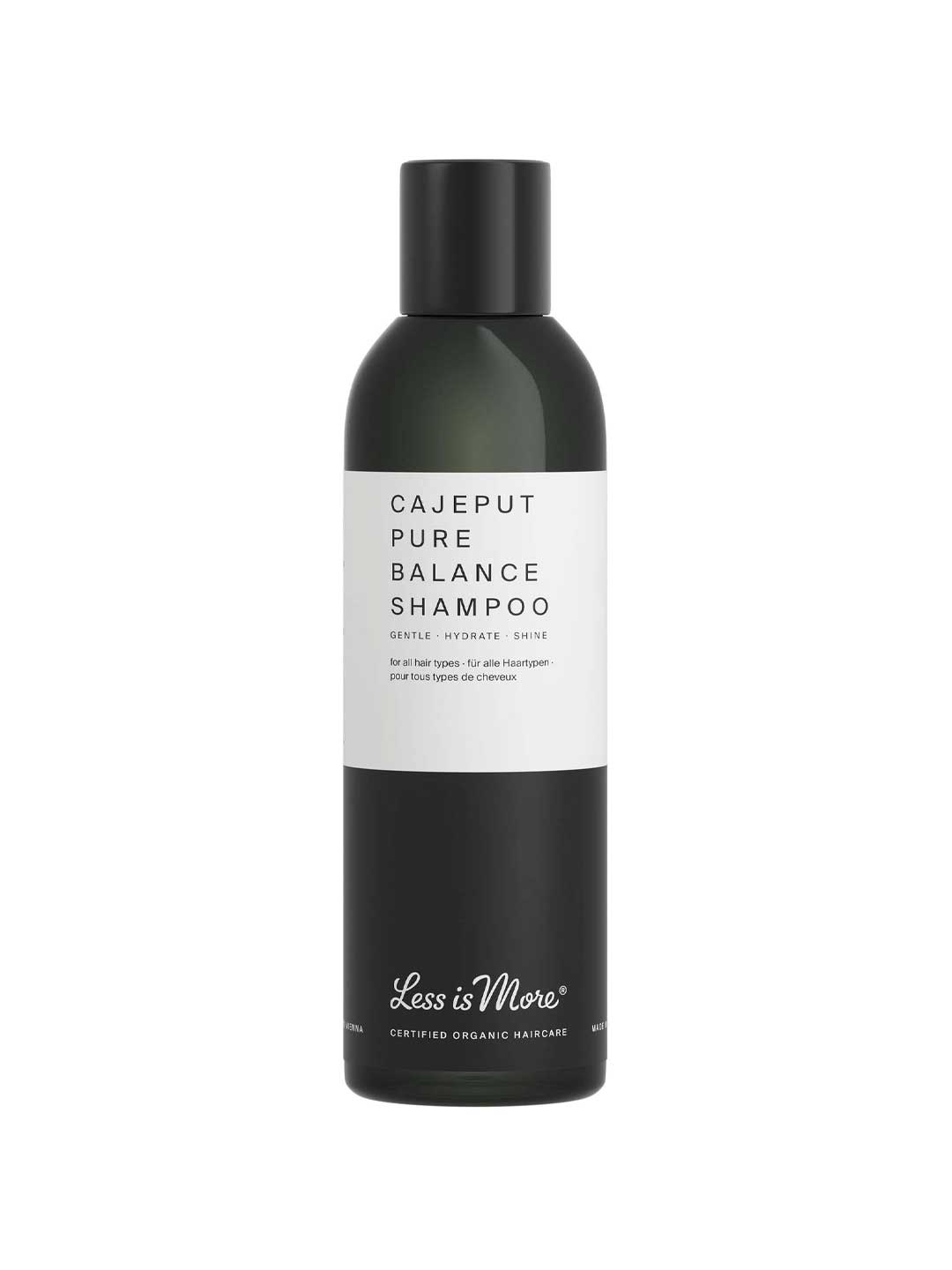 The Less Is More Cajeput Pure Balance Shampoo is a hydrating, balancing shampoo created for all hair types, designed to add softness and shine while helping protect against moisture loss. Evening Primrose Oil, rich in essential omega-6 fatty acids, nourishes the hair to support smoothness and natural shine, while Melissa extract helps soothe and comfort the scalp. The formula is infused with 100% certified organic aromatherapy essences of Cajeput, Rose Geranium, and Atlas Cedar, creating a fresh, grounding aroma that supports scalp balance and overall hair vitality. COSMOS certified organic, vegan, sulphate free, silicone free, suitable for colour-treated hair, and sustainably handmade and produced in Vienna, Austria.