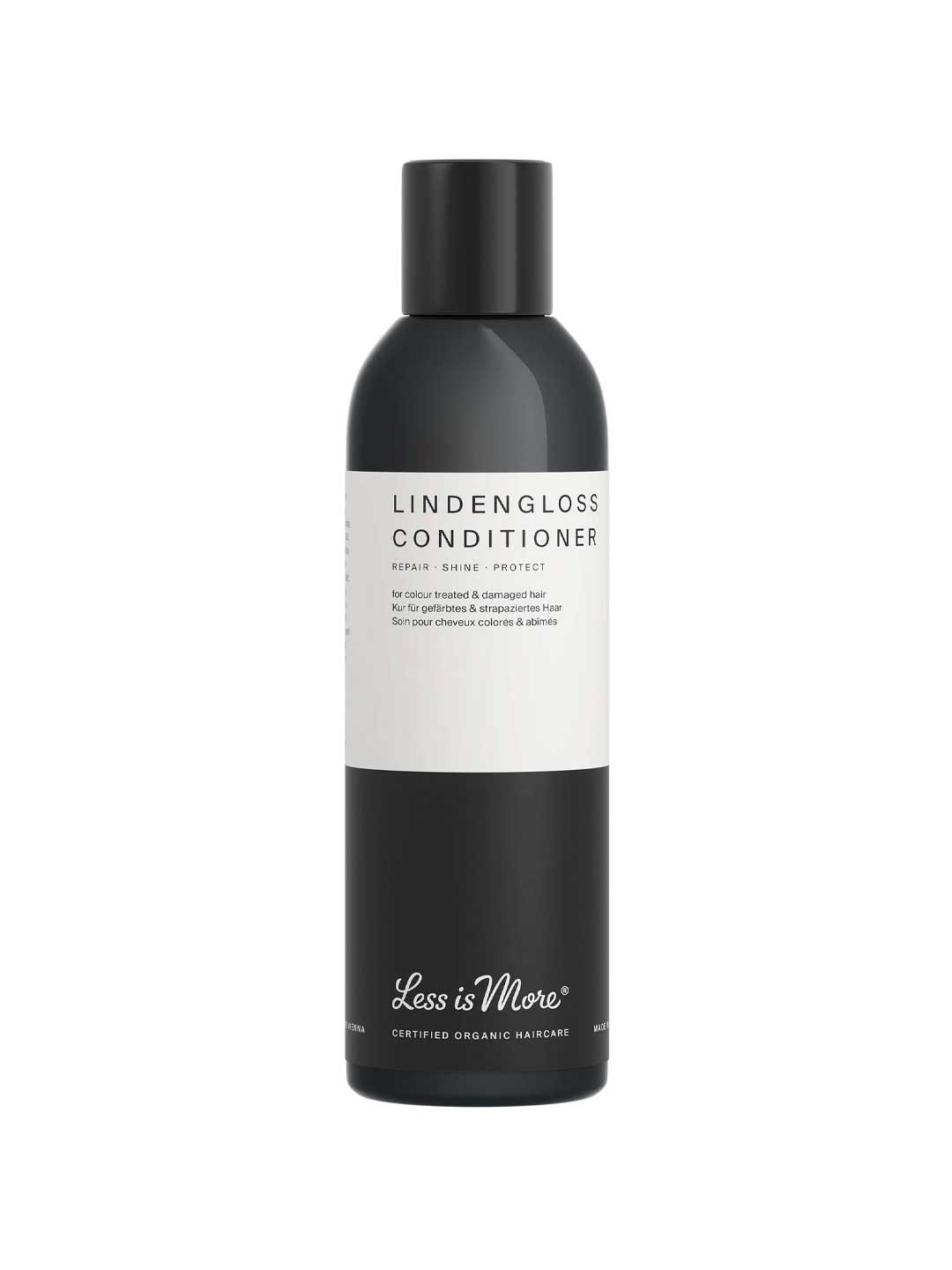 The Less Is More Lindengloss Conditioner is a bio-active conditioner created specifically for colour-treated and damaged hair, formulated to repair the hair structure, seal in colour, and enhance shine. Vitamin E-rich Wheat Germ Oil helps support hair exposed to heat styling, while antioxidant-rich Cistus extract helps protect colour and support vibrancy, leaving hair smoother and easier to manage. COSMOS certified organic, vegan, sulphate free, silicone free, and sustainably handmade and produced in Vienna, Austria. It is scented with 100% certified organic essences of Linden Flower, Petitgrain, Key Lime, Vanilla, and Atlas Cedar.