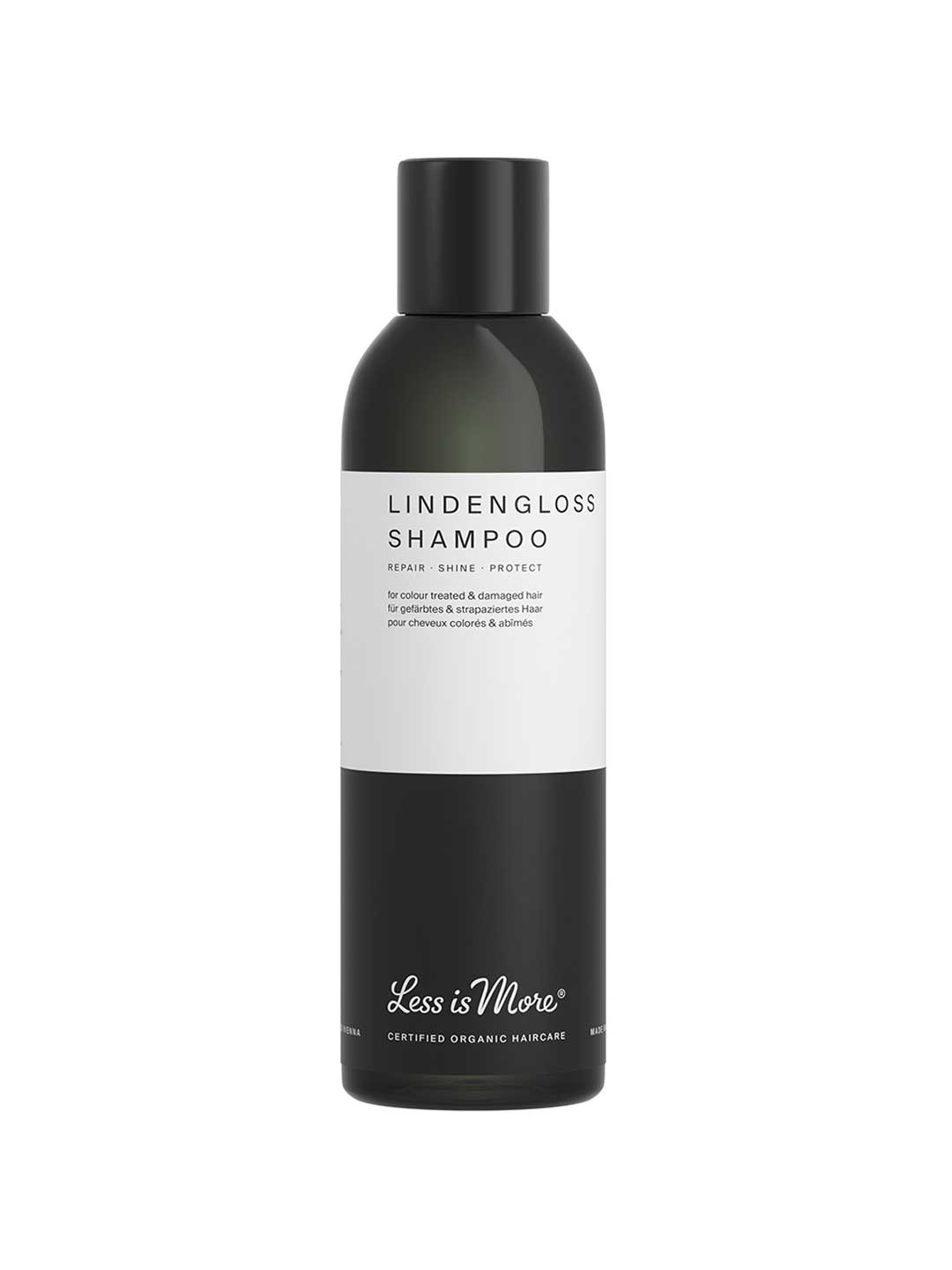 The Less Is More Lindengloss Shampoo is a nourishing shampoo created specifically for colour-treated and damaged hair, formulated with mild plant-based surfactants to gently cleanse while helping repair and protect colour and enhance shine. Vitamin E-rich Wheat Germ Oil helps support hair exposed to heat styling, while antioxidant-rich Cistus extract helps protect colour vibrancy and maintain healthy-looking shine. COSMOS certified organic, vegan, sulphate free, silicone free, and sustainably handmade and produced in Vienna, Austria. It is scented with 100% certified organic essences of Linden Flower, Petitgrain, Key Lime, Vanilla, and Atlas Cedar.