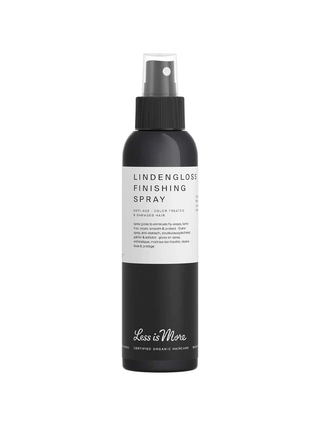 The Less Is More Lindengloss Finishing Spray is a lightweight glossing spray created specifically for colour-treated, damaged, and chemically treated hair, designed to smooth the hair structure, tame flyaways, and protect colour while enhancing shine. Enriched with Vitamin E-rich Wheat Germ Oil to support hair exposed to environmental stress, and antioxidant-rich Cistus extract to help protect against colour fading, this anti-static formula helps leave hair smoother, softer, and more polished without heaviness. COSMOS certified organic, vegan, silicone free, and sustainably handmade and produced in Vienna, Austria. It is scented with 100% certified organic essences of Linden Flower, Petitgrain, Atlas Cedar, and Douglas Fir.