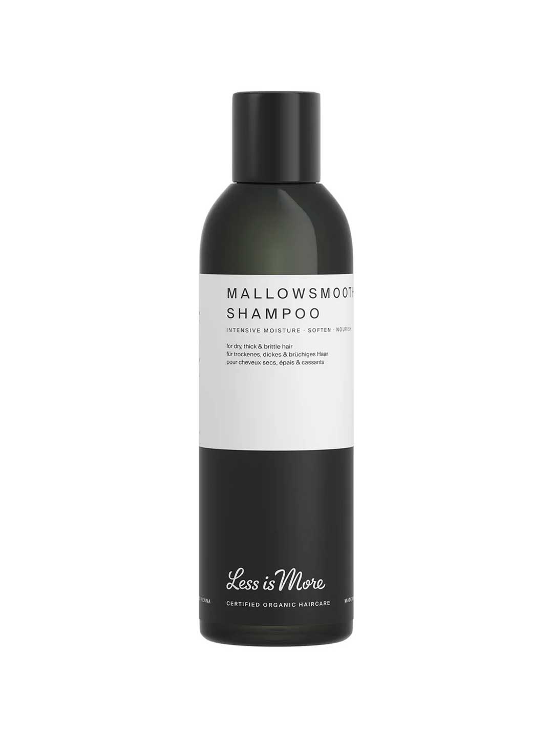 The Less Is More Mallowsmooth Shampoo is an intensive moisture shampoo created for dry, thick, and brittle hair that needs deep nourishment and softness. Omega-rich Rose Hip Seed Oil helps replenish dry hair with essential fatty acids, while traditional Mallow extract helps silkify, calm, and add moisture to rough hair textures. Virgin Coconut Oil penetrates the hair shaft to support lasting hydration and softness, helping protect hair from drying out. Certified organic and vegan, this sulphate free, silicone free formula is suitable for colour-treated hair and sustainably handmade and produced in Vienna, Austria, scented with 100% certified organic essences of Palmarosa, Ylang Ylang, Rose Geranium, and Orange.