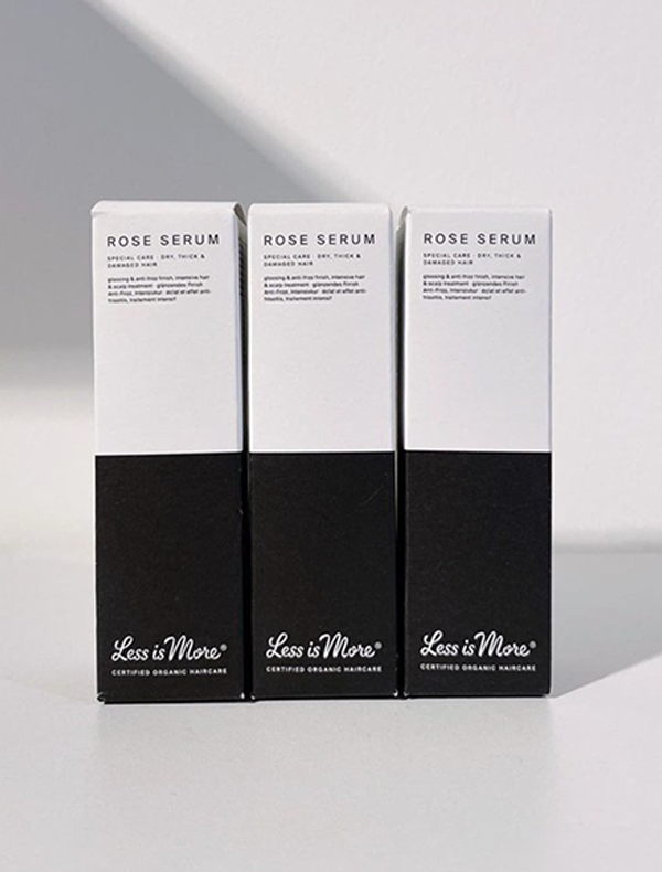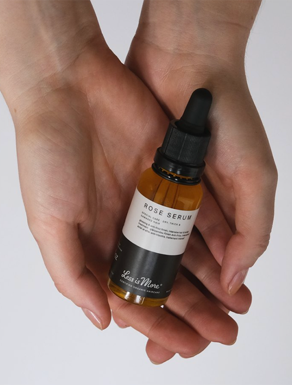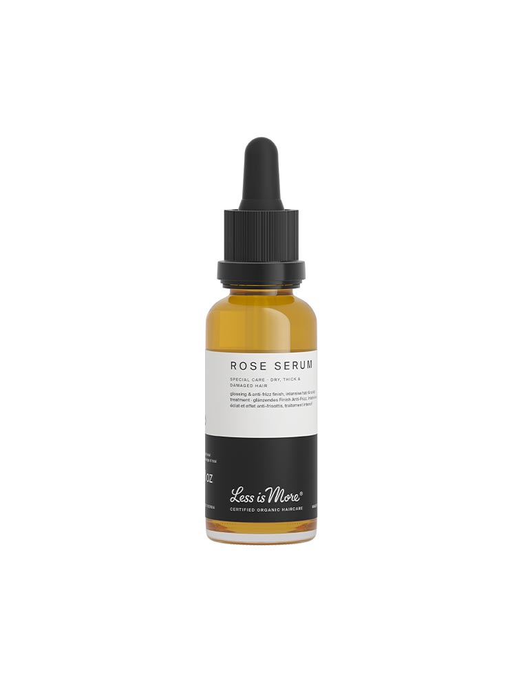 The Less is More Rose Serum is a luxurious hair oil designed to provide intensive care for dry, thick, and damaged hair. Created with a blend of cold-pressed Rose Hip Oil, Vitamin E, Jojoba Oil, Apricot kernel oil, and Coconut oil. This nourishing serum delivers gloss and smoothness while helping to soothe scalp irritation and enhance hair health. It features 100% certified organic essences of Rose Damasc, Rose Geranium, and Tangerine adding a beautiful natural fragrance to the hair.