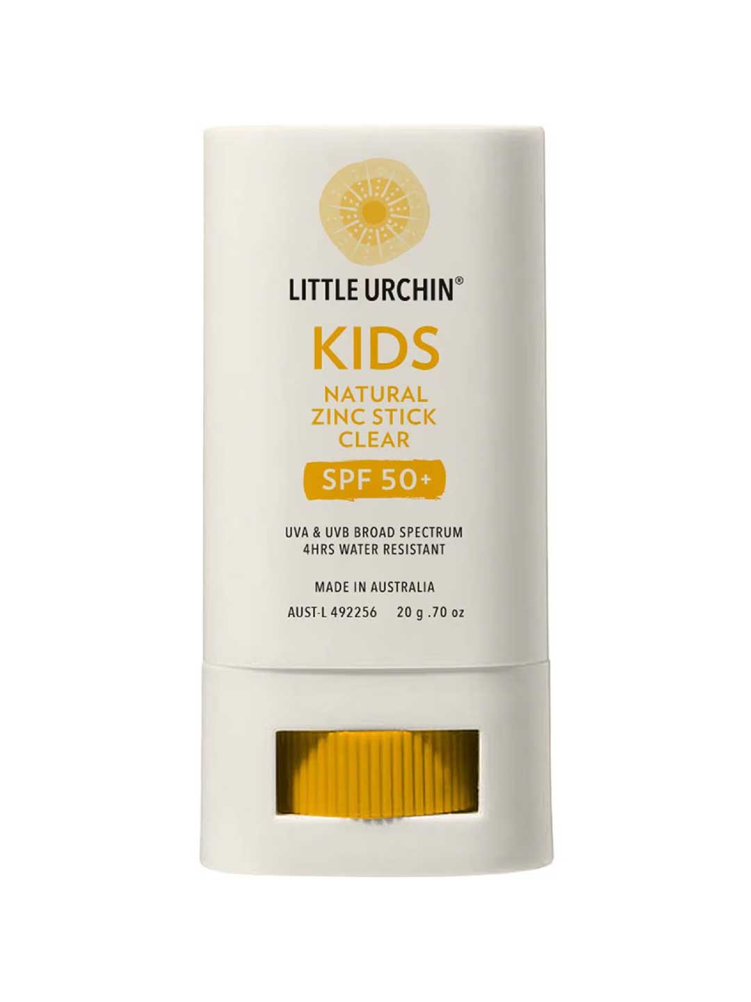 The Little Urchin Natural Clear Zinc Sunscreen Stick SPF 50 is a convenient, mess free mineral sunscreen suitable for the whole family. Designed for sensitive skin, this portable solid stick glides on smoothly to protect the face, lips and small areas that need targeted coverage.