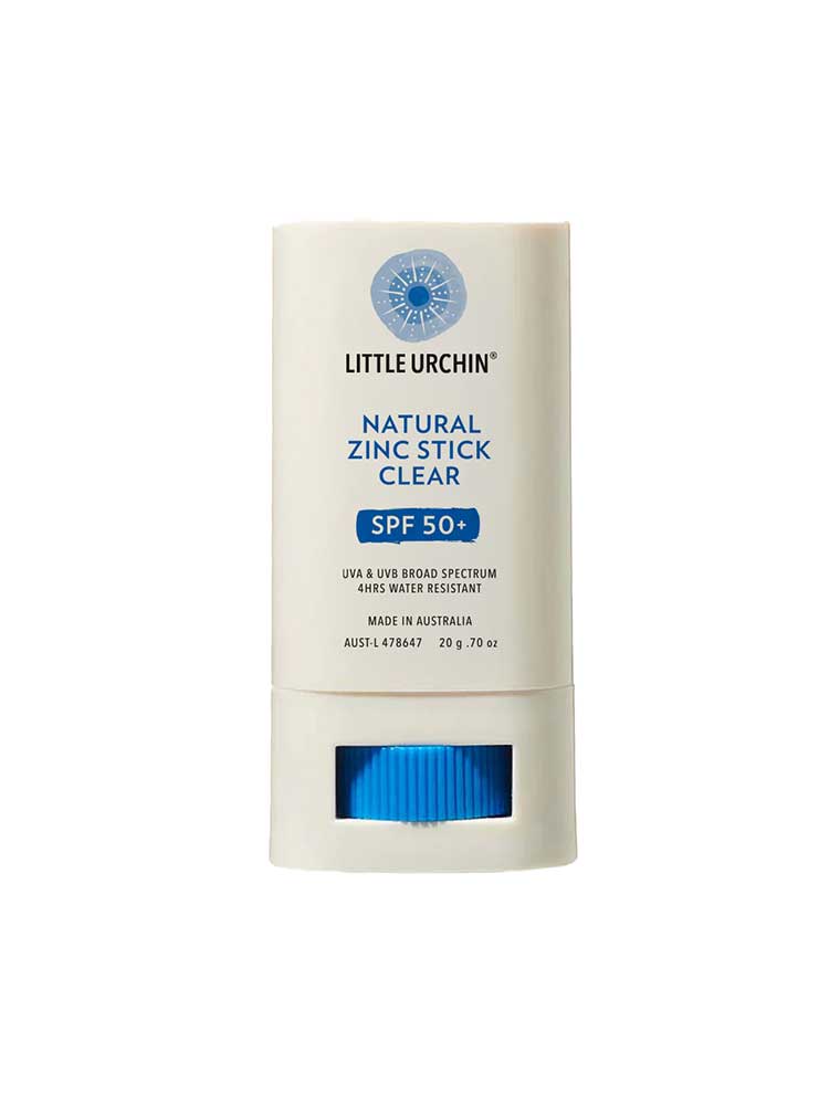 The Little Urchin Natural Zinc Stick Clear SPF 50+ provides broad-spectrum UVA and UVB protection in a convenient pocket-sized format. This clear and non-greasy stick combines Zinc Oxide with Coconut and Jojoba Oil for a smooth application. Water-resistant for four hours, it is ideal for active lifestyles and travelling, and suitable for the whole family from 6 months old. Made in Australia and vegan. TGA Listed (AUST L 478647). ALWAYS READ THE LABEL. FOLLOW THE DIRECTIONS FOR USE. Sunscreen is only one part of sun protection; wear protective clothing and seek shade. Avoid prolonged sun exposure and reapply frequently.