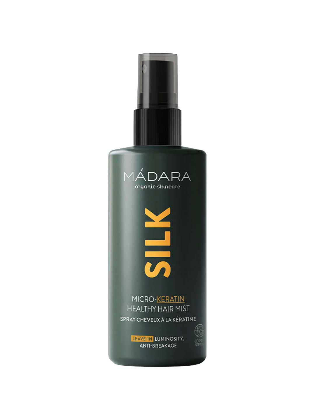 The Madara Silk Micro-Keratin Healthy Hair Mist is a lightweight leave-in conditioning spray designed to protect hair from heat styling while strengthening and smoothing damaged or fragile strands. Formulated with natural Micro-Keratin to help reinforce the hair fibre, plus lactic acid and red algae extract to improve elasticity and detangling, this mist helps minimise breakage and split ends caused by blow-drying, straightening and daily styling. Suitable for all hair types, it leaves hair softer, smoother and easier to manage without weighing it down. Made in Latvia and COSMOS certified natural.