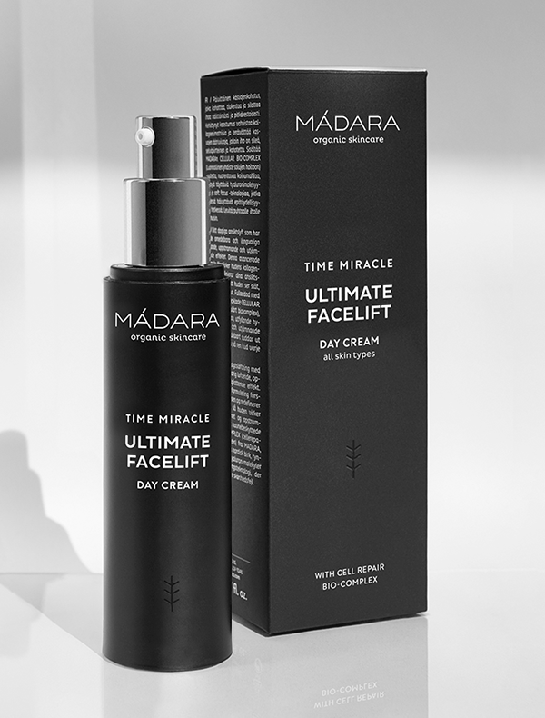 The Madara Time Miracle Ultimate Facelift Day Cream is a potent, yet luxuriously lightweight face moisturiser that delivers instant and long-term effects of smoother and firmer-looking skin. This unique anti-ageing formula features multi-molecular Hyaluronic Acid and Chitin that hydrate and help restore the youthful definition of tired skin for an instantly lifted look, plus a Cellular Bio-Complex of antioxidant-loaded extracts from 7 Northern Plants. Enhanced with light-reflecting natural minerals that help to soften imperfections, leaving the skin more radiant with improved firmness and tone. Dermatologically tested. Made in Latvia, certified organic and vegan.