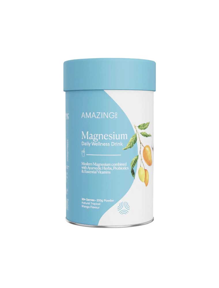 The Amazing Oils Daily Wellness Drink is a comprehensive wellness combination of magnesium, pre and probiotics, and traditional adaptogenic Ayurvedic herbs. This refreshing tropical-mango flavoured drink is designed with all-natural ingredients to support energy, focus, and balance throughout your day. The formula contains magnesium citrate, which enhances solubility and bioavailability, providing 41.6% of your daily magnesium requirements. Key ingredients include magnesium to boost energy levels, ease stress, and support digestion; pre and probiotics to nourish good bacteria and promote smooth digestion; and Kakadu Plum, native to Australia and packed with vitamin C to support immune health.