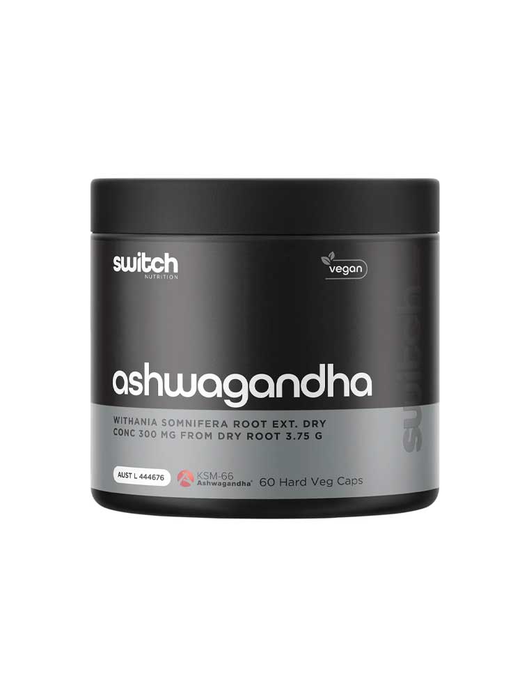 The Switch Nutrition KSM-66® Ashwagandha Capsules combat stress head on. Activate your body's natural mood and stress defences with this adaptogen, known for its Ayurvedic benefits in promoting adrenal health. With our premium blend, you're not just choosing a supplement; you're turning the key to improved mood, reduced stress and fatigue, and better immune health. Traditionally used in Ayurvedic medicine, Ashwagandha helps reduce the effects of physical and emotional stress, promoting a sense of calm. It assists in maintaining a stable mood and supporting emotional well-being through its adaptogenic properties. Taken before bed, Ashwagandha may support more restful and restorative sleep by calming the nervous system. Welcome to a world where you can tackle the impacts of stress head on. AUST L 444675.
