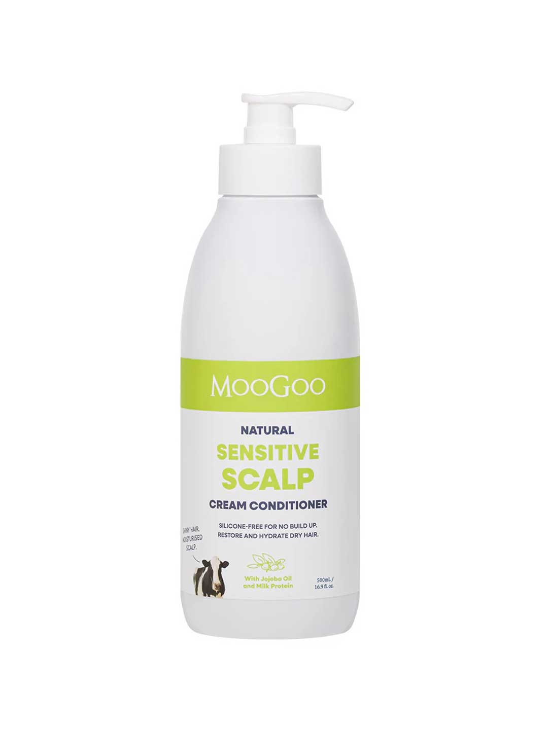 The MooGoo Sensitive Scalp Cream Conditioner is formulated for sensitive, itchy or easily irritated scalps, including those prone to eczema, dermatitis and scalp dryness. This is a lightweight, silicone free conditioner that hydrates and softens the hair without build-up, using Jojoba and Olive Oils for nourishment and Milk Protein to help strengthen hair fibres and improve manageability. This low-irritation conditioner leaves hair soft without weighing it down, ideal for the whole family and especially suited to curly hair. Made in Australia.