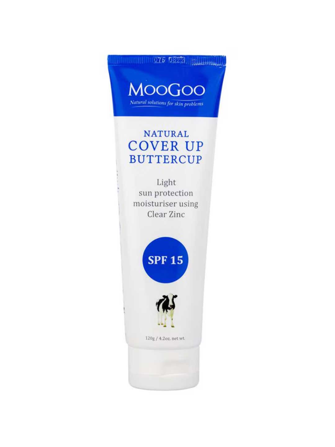 The MooGoo Cover Up Buttercup SPF 15 Natural Moisturiser combines sun protection with daily hydration. This non-greasy formula features clear zinc oxide and Raspberry Seed Extract for broad-spectrum coverage. Natural oils pamper and moisturise the skin. Suitable for all ages and skin types, this lightweight cream provides four hours of protection while being gentle enough for sensitive skin. Naturally preserved with Hops Extract. Made in Australia and vegan.