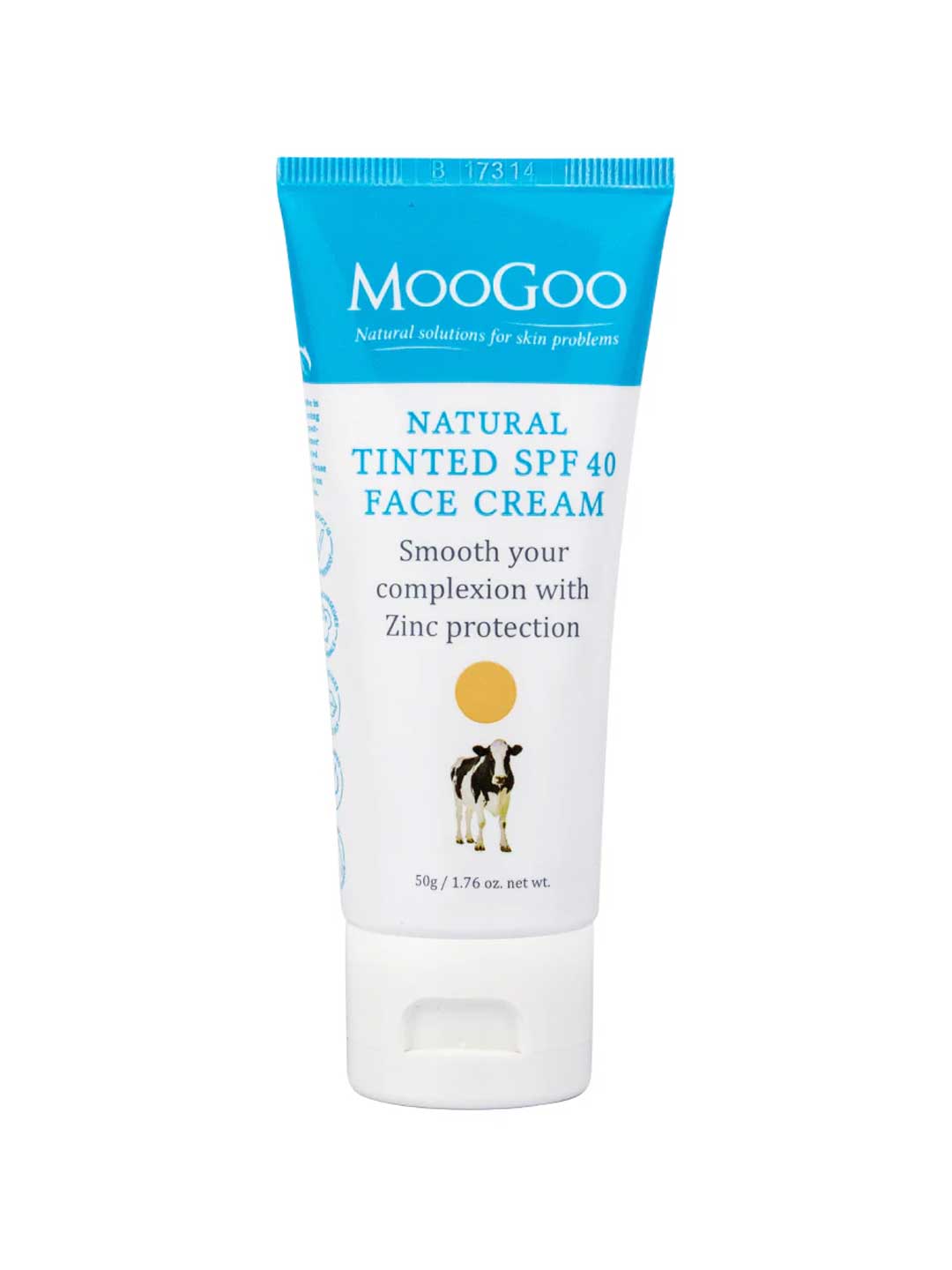 The MooGoo Tinted SPF 40 Face Cream is a natural sun protection formulation designed to provide broad-spectrum coverage while evening out skin tone. It uses Zinc Oxide as a physical barrier to reflect UVA and UVB rays away from the skin, offering SPF 40 protection. This cream includes natural moisturising oils for hydration and Iron Oxide for a natural, tan-coloured tint, resulting in a smooth, protected complexion. Free from chemical UV filters and synthetic preservatives. Made in Australia.