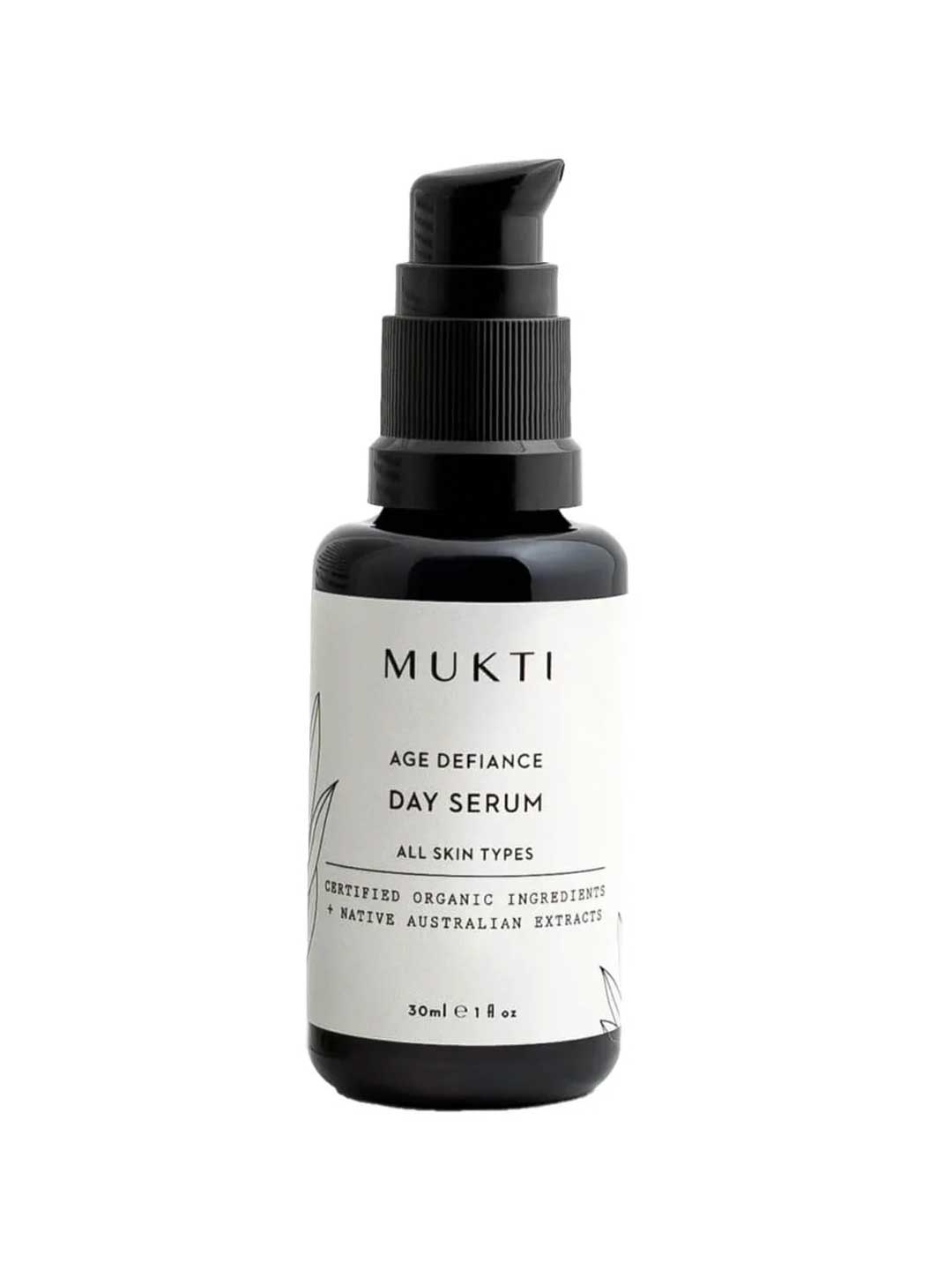 The Mukti Age Defiance Day Serum is a concentrated anti-ageing serum for all skin types that helps target the appearance of fine lines, wrinkles, firmness and elasticity with highly effective Peptides and Australian native extracts. Created specifically for daytime use, this advanced formula features the Peptides Argireline, Leuphasyl and Antarticine to target facial expression muscles, regenerate the skin and help reduce the formation of wrinkles. Enhanced with Hyadisine, a marine biotechnology with superior water-retaining capacity for immediate and long-lasting hydration and plumping of the skin. Free from silicone and mineral oil. Made in Australia, vegan and packaged in glass.