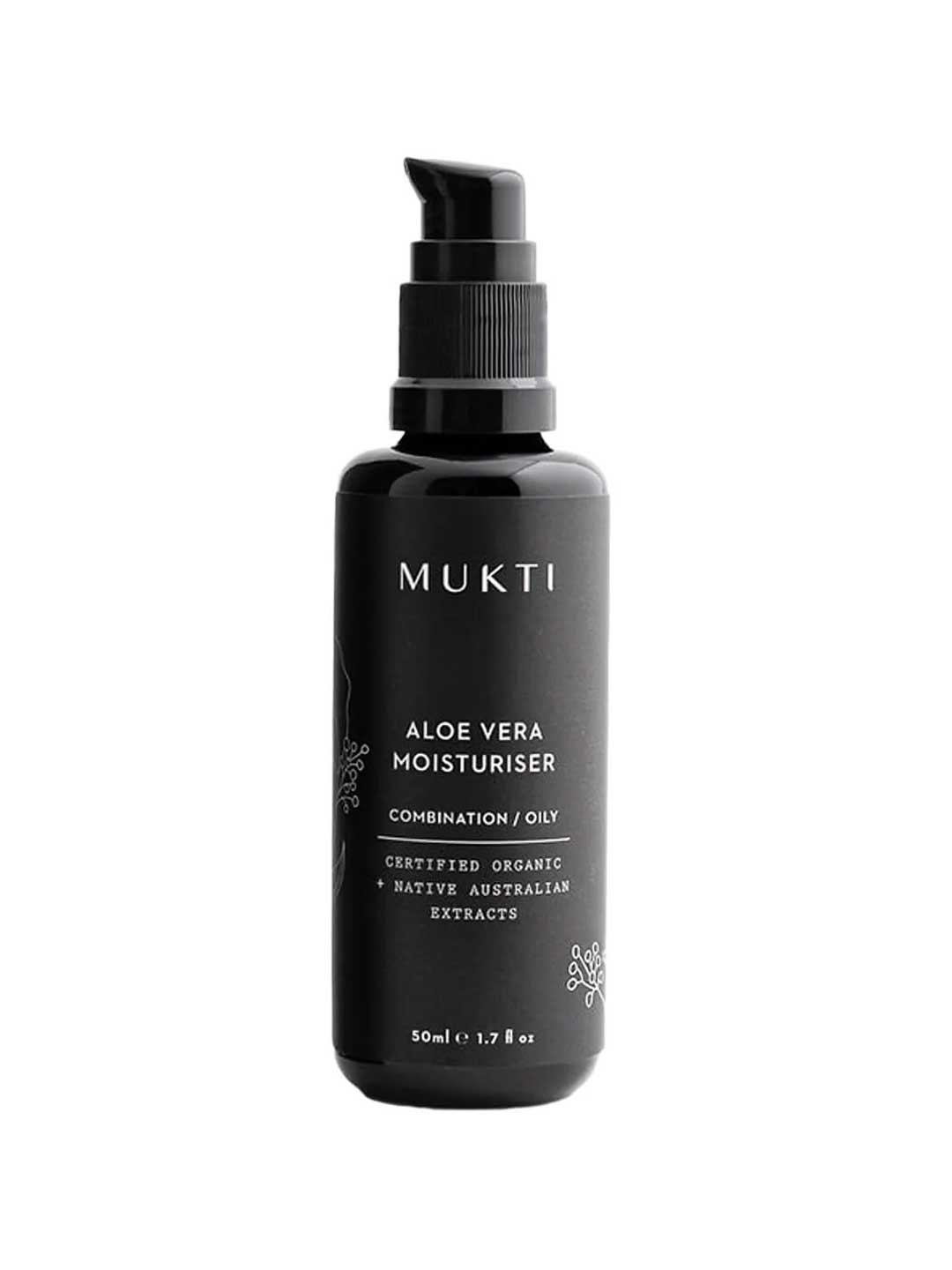 The Mukti Aloe Vera Moisturiser is a face moisturiser designed for combination to oily complexions. This hydrating moisturiser is a lightweight daily formula that combines soothing Aloe Vera and Calendula with powerful Australian natives including Vitamin C-rich Kakadu Plum, purifying Aniseed Myrtle and brightening Finger Lime Caviar. The natural moisturiser has a refreshing gel texture that carries an uplifting citrus and juniper aroma while providing oil-free hydration for clearer, comfortable skin. This facial moisturiser helps balance oily and combination skin while purifying and calming the complexion. Made in Australia, certified organic, vegan and packaged in glass. Free from artificial colours and fragrances, mineral oils and silicone.