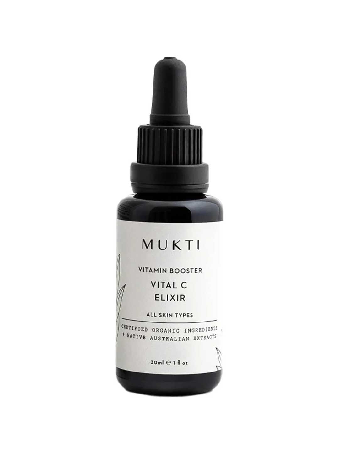The Mukti Vitamin C Elixir is an advanced brightening Vitamin C serum combining 3-O-Ethyl Ascorbic Acid, a next-generation, highly stable form of Vitamin C, and Vitamin C-rich Kakadu Plum. This powerful formula features Knotgrass Extract rich in protective flavonoids, Ferulic Acid from native finger limes, and synergistic Vitamin E for enhanced results. The lightweight texture carries a refreshing citrus scent and absorbs quickly to deliver vitamin C serum benefits including brightening, antioxidant protection and support for skin firmness and luminosity. Suitable for all skin types. Free from silicone and mineral oil. Made in Australia, vegan and packaged in glass.