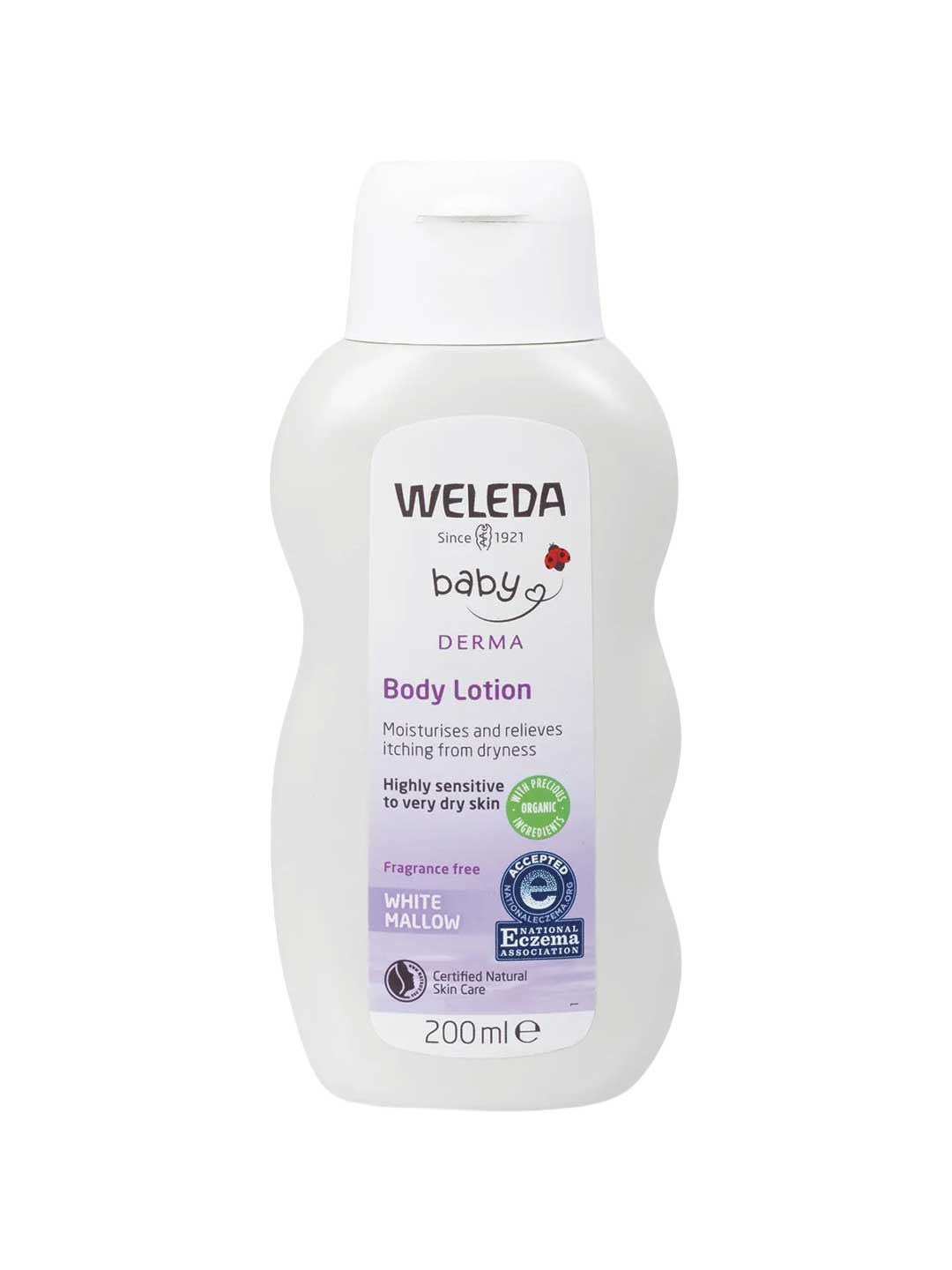 The Weleda White Mallow Body Lotion provides tender care for highly sensitive and very dry skin. This fragrance-free body lotion features organic White Mallow extract and Pansy flower to help soothe irritation, and organic Coconut and Sesame oils to nurture. Specially designed to relieve itchiness and provide a soft cooling sensation, this gentle lotion is ideal for the whole family and suitable for all skin types, including hypersensitive, dry and atopic skin. In clinical studies, parents' assessment showed 76% improved skin soothing after 28 days, and testing showed 38% increased skin moisture after 28 days. Accepted by the National Eczema Association and dermatologically tested. Made in Germany and certified natural.