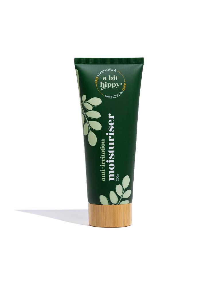The A Bit Hippy Body Moisturiser is a lightweight, creamy lotion designed to hydrate your whole body. The star ingredient is Starflower Oil, the highest natural source of GLA (an Omega-6 fatty acid), which hydrates and helps to calm redness. It also contains Coconut Oil, Liquorice Root, Vitamin E, and Aloe Vera to soothe even the most sensitive skin. This nourishing body moisturiser is nearly scent-free, with just a little wild geranium for an uplifting experience. Made in Australia and vegan.