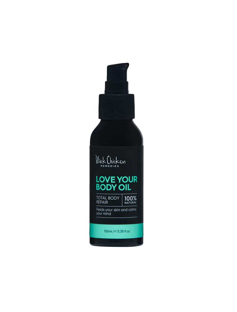 The Black Chicken Remedies Love Your Body Oil combines pure oils with botanical ingredients for daily skin conditioning. This intensive blend features moisturising Avocado Oil, Rosehip Oil, and Hazelnut Oil, enhanced with aromatic Sandalwood and Geranium Bourbon. Perfect for dry skin and daily hydration, this oil absorbs easily while providing a sensual, ocean-inspired aromatherapy experience. Made in Australia and vegan.