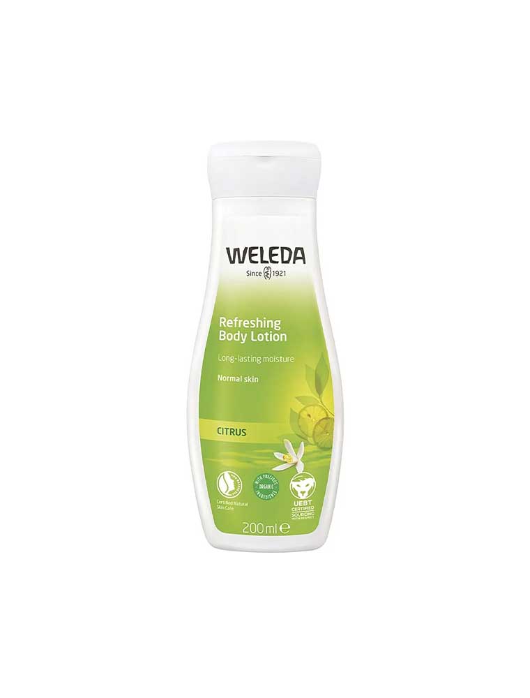 The Weleda Refreshing Body Lotion Citrus is a light and fast-absorbing lotion that gives instant refreshment and long-lasting moisture for all skin types. Formulated with organic Aloe Vera leaf juice and Coconut Oil, this quickly absorbing, non-greasy formula leaves skin soft and comfortable all day. The uplifting fragrance of sun-ripened lemons provides instant refreshment while the formula delivers 24hr immediate and long-lasting moisture. In clinical studies, results showed 98% immediate skin moisture, 90% agree the lotion provides noticeably long-lasting hydration, and 80% agree skin feels light and refreshed. Made in Germany, certified natural and vegan.