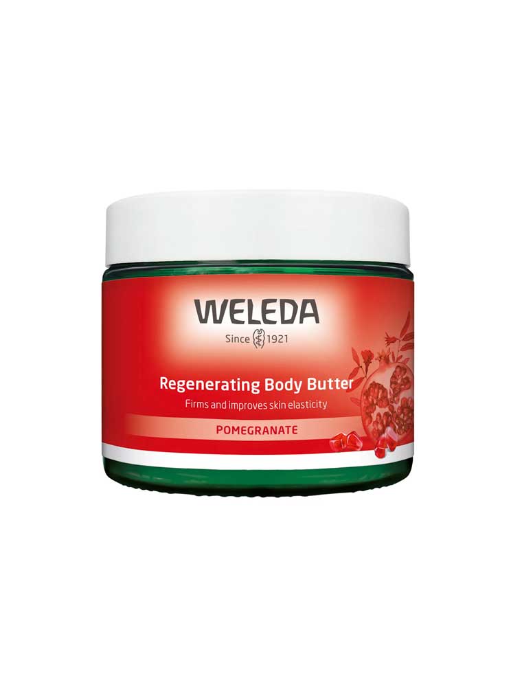 The Weleda Pomegranate Regenerating Body Butter is a renewing formula that firms and improves skin elasticity for maturing skin. This rich body butter features antioxidative Pomegranate extract, clinically proven to firm and regenerate skin while combating premature skin aging. Gotu Kola supports collagen production to increase skin elasticity, while organic Shea Butter leaves skin hydrated for 12 hours. It is easily absorbed and non-greasy, so you can dress immediately after massaging it in. The sublimely exotic fragrance of Orange, Davana and Vanilla creates a pampering and indulgent experience. Clinical studies showed 7% increased skin elasticity with firmer skin within 2 weeks and 10% reduced skin roughness with twice daily application. Made in Germany, certified natural and vegan.
