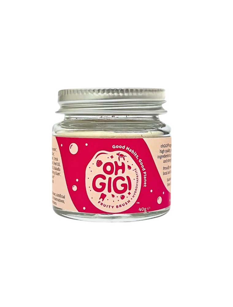 The Hydroxyapatite Tooth Powder 'Fruity Brush' is an Australian-made natural tooth powder enhanced with 10% micro hydroxyapatite, formulated from high-quality, pure food-grade, and locally sourced mineral-rich biodegradable ingredients. Perfectly flavoured with the right balance of organic Lemon and Orange essential oils with Australian natives Kakadu Plum, Davidson Plum, and Strawberry Gum, creating a balanced fruity experience that kids and adults will love. The micro hydroxyapatite is a natural non-nano compound derived from ethically sourced, Australian-certified BSE-free pasture-fed bovine bone. Each jar contains approximately 200 brushes, equivalent to 2.5 medium-sized toothpaste tubes. Made in Australia and packaged in glass.