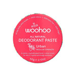 The WooHoo Deodorant in Urban is a regular strength natural deodorant paste that supports natural freshness with sophisticated style. This aluminium-free formula features a refined blend of subtle floral and citrus scents using 100% pure essential oils, ideal for professional and everyday settings. This regular strength paste works just as effectively as traditional antiperspirants while being gentle on your skin. The smooth-application formula uses natural ingredients including Shea Butter and Zinc to protect your skin's barrier while providing reliable odour protection. Won't leave white marks or stains, doesn't sting after shaving. Packaged in a 100% recyclable tin for easy application. Made in Australia, vegan and packaged in cardboard.