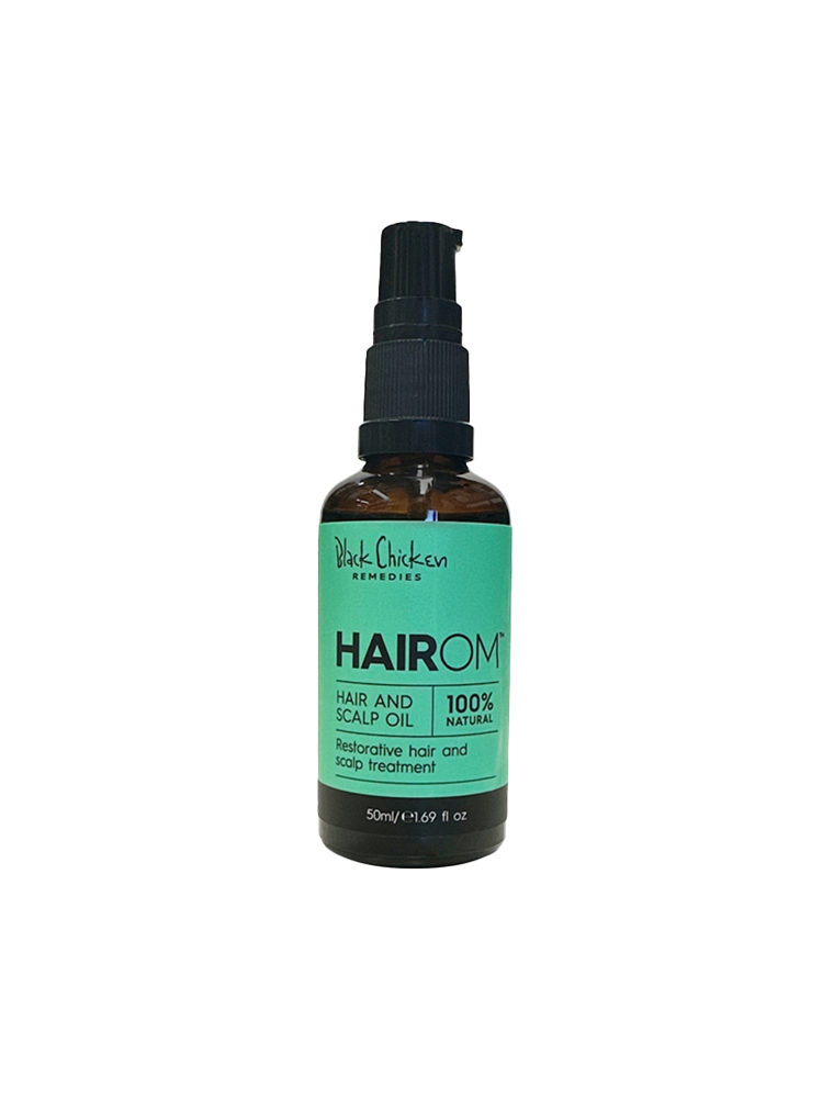 The Black Chicken Remedies HairOM Restorative Hair and Scalp Treatment is a natural oil blend that combines Rosemary with moisturising Moroccan Argan Oil. This concentrated formula features Sesame Oil known for its warming properties, Jojoba Oil that resembles natural hair oils, and botanical oils rich in omega fatty acids, while Vitamin E provides natural preservation. Suitable for all hair types including fine, dry, or those seeking a natural hair treatment. Made in Australia, vegan and packaged in glass.
