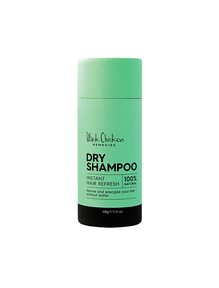 The Black Chicken Remedies Natural Dry Shampoo refreshes hair between washes with natural oil-absorbing ingredients. This effective formula combines Cornstarch and Tapioca with volumising Bamboo Powder, while silica-rich Fossil Shell Powder helps add texture to strands. The addition of stimulating Rosemary and balancing Clary Sage essential oils creates an aromatic experience, making this natural refresh perfect for busy lifestyles and post-workout touch-ups. Made in Australia, vegan and packaged in cardboard.