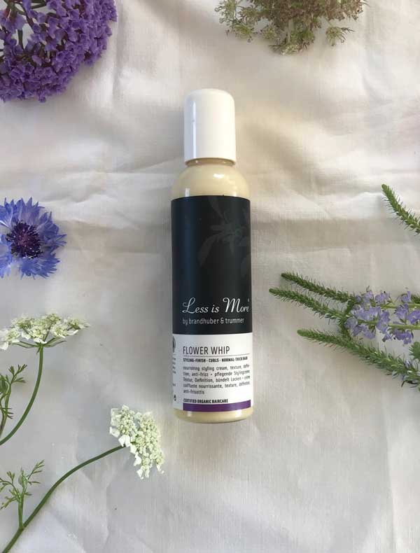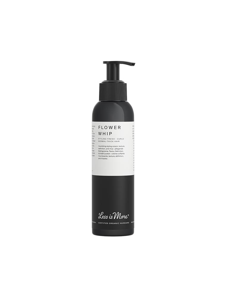 The Less is More Flower Whip is a luxurious hair styling cream designed to enhance and define curls while providing essential nourishment. Created with fair trade Shea Butter rich in protective phytosterols and vitamins, combined with natural Beeswax for hold and pure Aloe Vera juice for moisture. Ideal for normal to thick hair, this is a light-weight formula that delivers bounce, shine, and definition. It features 100% certified organic essences of Ylang Ylang, Rose Geranium, and Orange for adding a lingering sensual aroma to the hair.