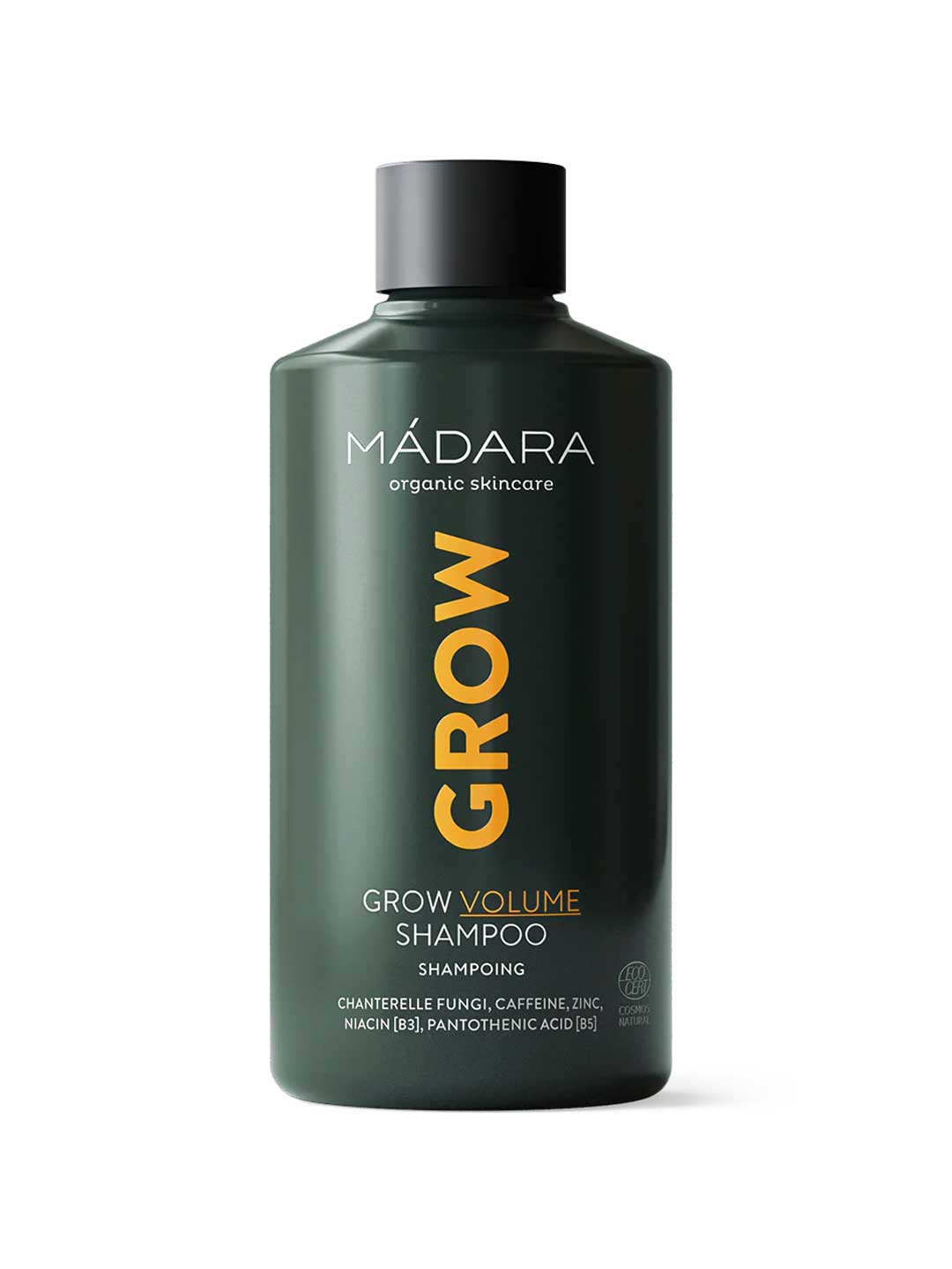 The Madara Grow Volume Shampoo is formulated specifically for fine and thinning hair. Energising Caffeine helps revitalise the scalp, while Northern Chanterelle Mushroom extract supports hair vitality and helps hair appear more resilient and voluminous. A blend of Biotin, Niacin and Pantothenic Acid supports hair wellbeing and shine, while Keratin smooths the hair shaft to improve resilience and reduce the appearance of breakage and split ends. This gentle, silicone-free shampoo cleanses thoroughly without weighing hair down and helps maintain the hair's natural moisture balance. Suitable for colour-treated hair. Made in Latvia and COSMOS certified natural.