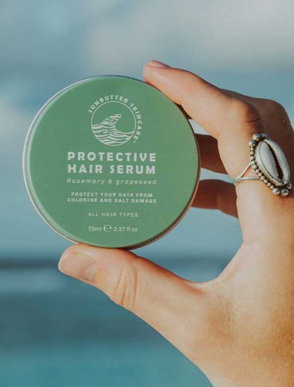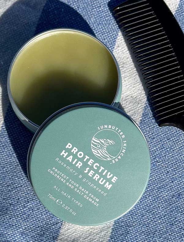 The SunButter Skincare Protective Hair Serum combines locally sourced Rosemary with Grapeseed Oil and Australian Beeswax in a nourishing formula that helps hair maintain its natural condition when exposed to environmental elements like chlorine and salt water. Suitable for all hair types, this versatile product can be used as either a lightweight daily serum or an intensive mask treatment to help keep strands feeling soft and looking healthy. Made in Australia.