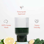 Organic Spinach, Organic Spirulina, Organic Kale, Organic Ginger, Organic Alfalfa, Natural Lemon Flavour, Organic Quinoa Sprouts (Panmol B®), Silica, Proline, Glycine, Organic Jerusalem Artichoke (Inulin), Lysine, Natural Sweetener (steviol Glycosides), Zinc Glycinate, Ascorbic Acid (Vitamin C), Bifidobacterium Longum (1.6bn CFU/s), Lactobacillus Acidophilus (1bn CFU/s), Bifidobacterium Lactis (2.4bn CFU/s), Digestive Enzymes, Selenium