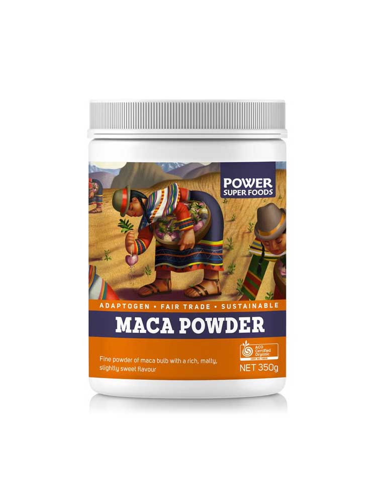 The Power Superfoods Maca Powder is a delicious and nutritious blend of yellow, red, and black maca varieties, hand-harvested and sun-dried in the traditional way in the Peruvian mountains. This superfood is traditionally known for providing nutritional support to help the body adapt during times of stress and fatigue, and to support hormones. With a pleasant, malty caramel flavour, it's a perfect addition to drinks and snacks to support energy and vitality. This fairly traded organic maca also provides positive outcomes for small-scale Peruvian farmers. Made in Australia, certified organic and vegan.