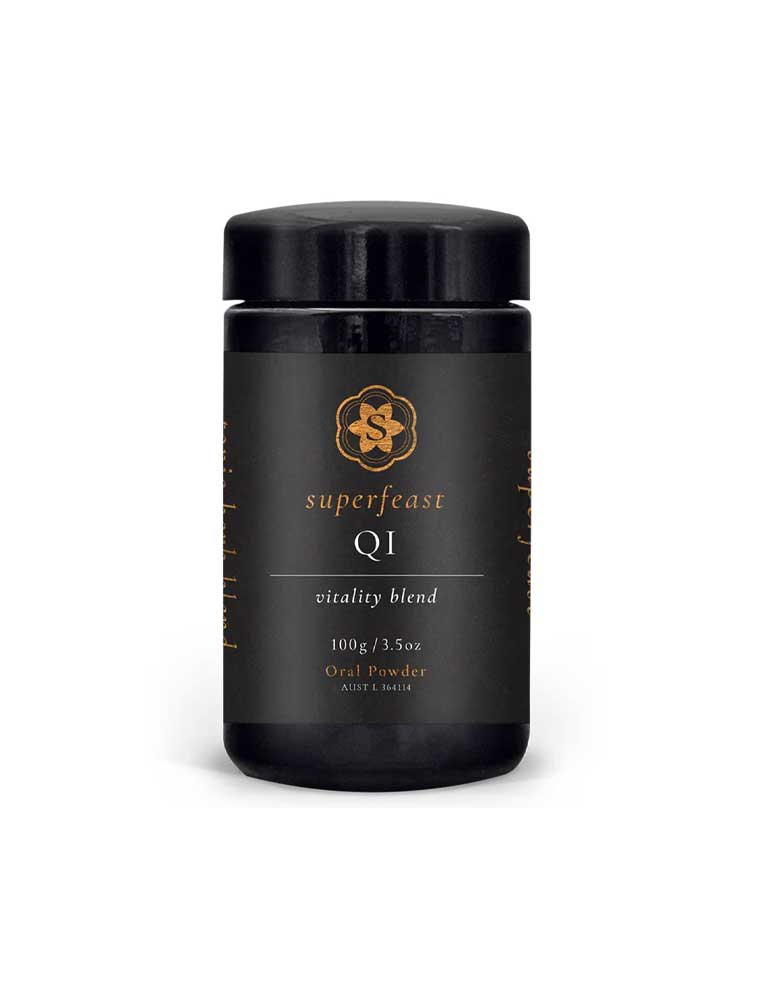 The SuperFeast QI blend is a masterfully crafted formula combining the most revered Qi tonics from ancient Taoist tradition. Designed to stoke metabolic fire and amplify vital energy, these herbs work deeply on the body's digestive and respiratory systems through tonification of Spleen Qi and Lung Qi. This powerful blend helps improve digestion, eliminate stagnation, regulate temperature and enhance the body's capacity to harvest Qi from food and breath. Particularly beneficial for those experiencing bloating or digestive issues related to dysfunctional Spleen Qi, it also supports Wei Qi for enhanced immune function and protection from pathogens. Traditionally used in Chinese medicine to enhance vitality, relieve fatigue, and promote overall wellbeing, SuperFeast QI is sourced following strict Dì Dào principles from herb-producing regions of China, ensuring authentic potency and quality. Lab-tested for purity, Packaged in Miron Glass. AUST L:364114