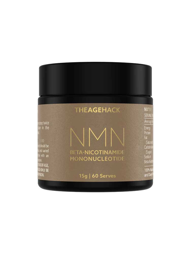 The Age Hack NMN Powder is a daily supplement designed to support cellular vitality and overall well-being. Each serving contains 250mg of 99.9% pure Nicotinamide Mononucleotide (NMN), crafted using a superior fermented extraction technique that avoids harmful solvents and chemicals. This meticulous process preserves the product's stability and integrity, resulting in a pure white powder with a neutral smell. All formulations undergo rigorous third-party testing to guarantee a premium and consistent formula Made in Australia and vegan.