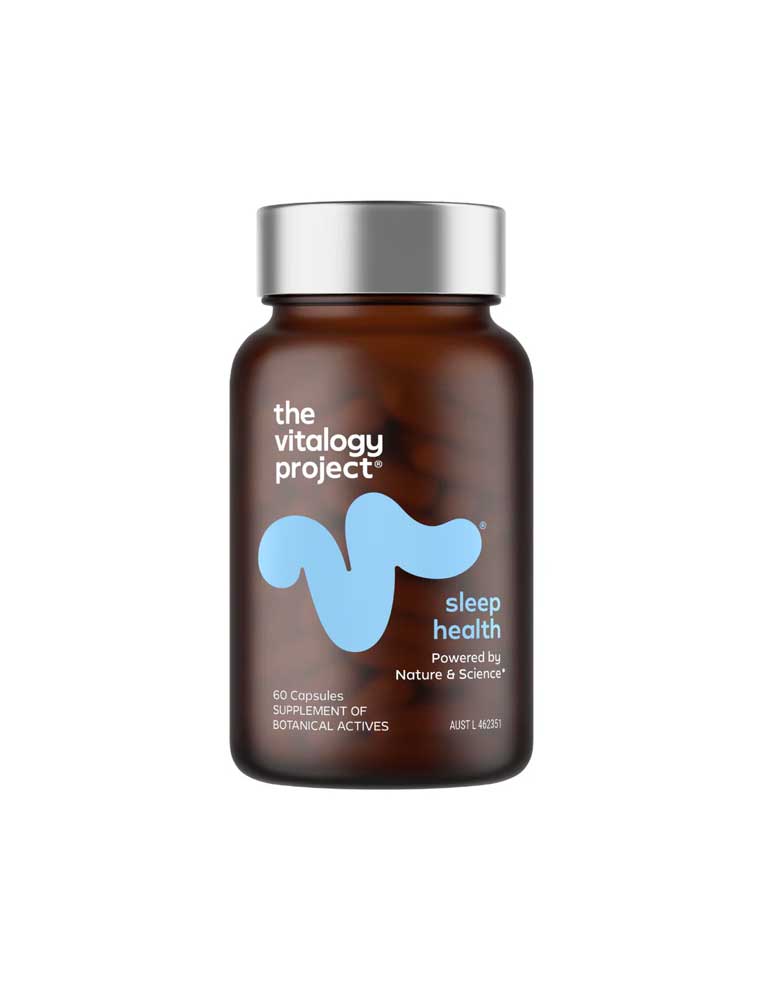 The Vitalogy Project Sleep Health is formulated to support sleep and reduce the factors affecting sleep, containing ingredients that work together in synergy to increase sleep quality and deep sleep, enhance a refreshing, restorative sleep, help reset sleep-wake cycle, and reduce time to fall asleep. This expert-crafted formula features Shoden, the extract from Ashwagandha herb that works by lowering cortisol to calm your stress response, CPO Lavender Oil concentrated extract packed with linalool and linalyl acetate for calming properties, and Jujube rich in antioxidants that enhances the brain's production of GABA to calm the nervous system. The natural, brain-friendly approach promotes relaxation and mental clarity in tandem with a healthy sleep cycle. Made in Australia. TGA Listed (AUST L 462351). ALWAYS READ THE LABEL AND FOLLOW THE DIRECTIONS FOR USE. If symptoms persist, talk to your health professional.