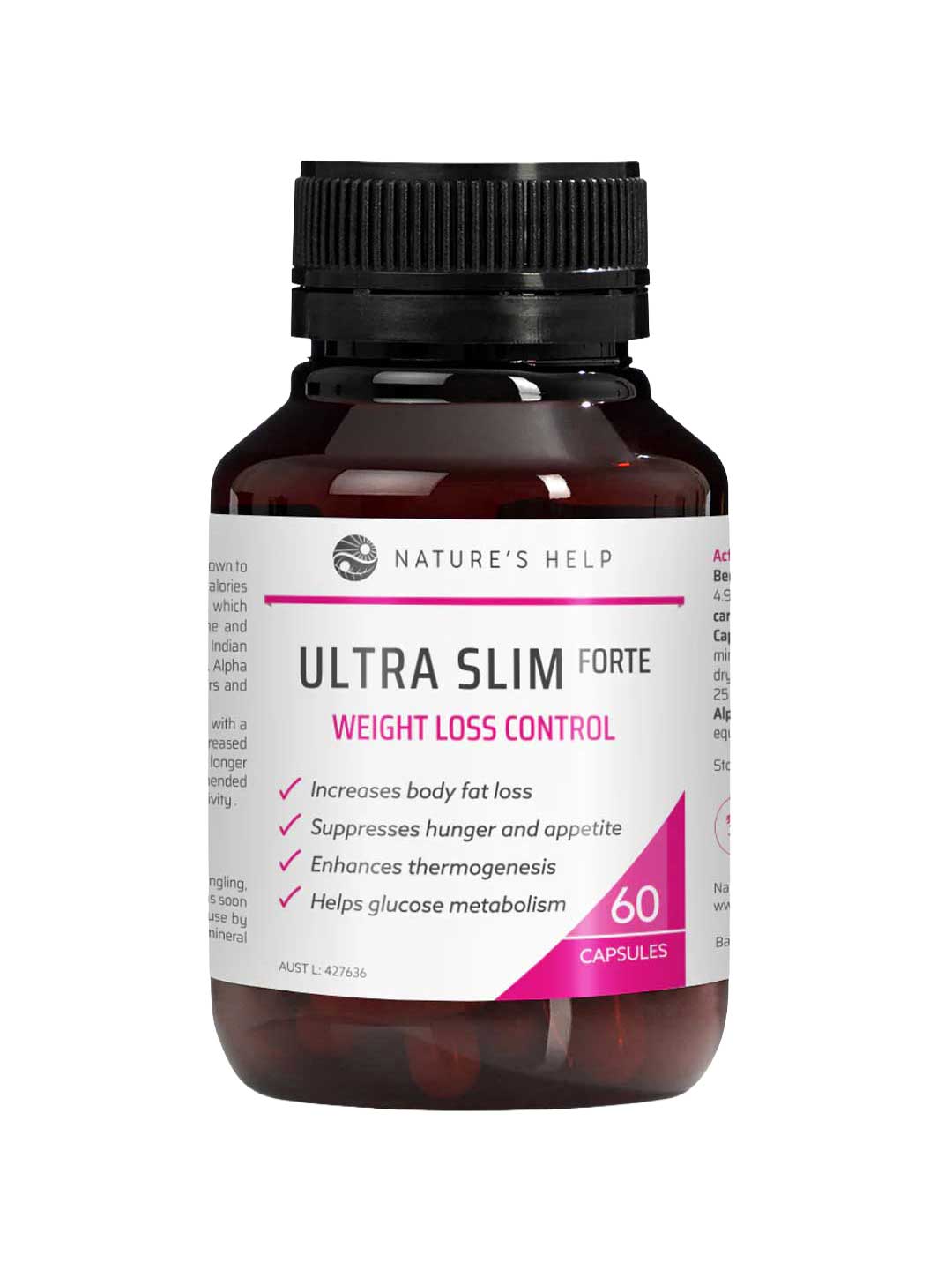 The Nature's Help Ultra Slim Forte is a premium combination of berberine, botanical extracts and amino acids designed to support healthy metabolic function, appetite regulation and general wellbeing. This advanced blend includes berberine alongside capsicum, caraway, saffron and amino acids, formulated to complement a balanced diet and active lifestyle.