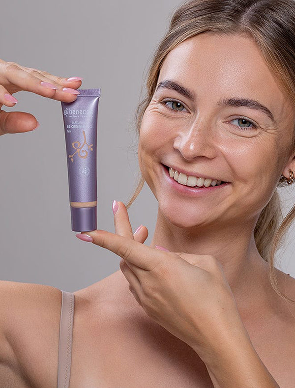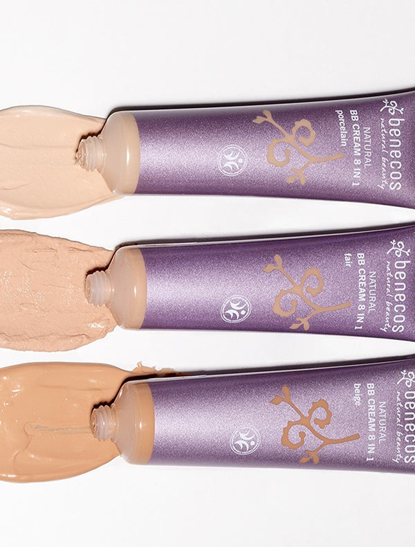 The Benecos BB Cream is a multi-tasking 8-in-1 Beauty Balm formulated with Jojoba, Acai and light-reflecting mineral pigments for a flawless complexion. This multi-tasking cream smooths, nourishes, moisturises, calms, corrects and evens out the skin tone all in one application. Available in Porcelain, Fair, and Beige adaptable shades. Made in Germany, certified natural and vegan.