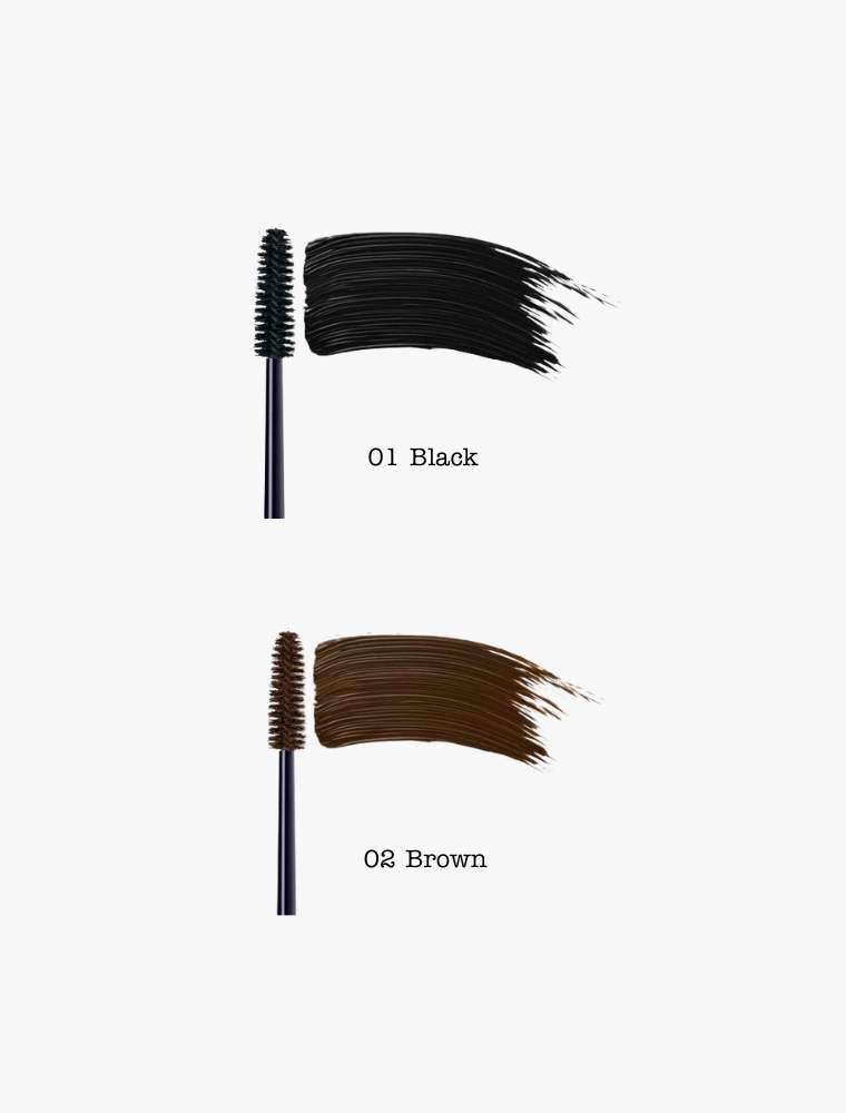 01 black: Water (Aqua), Pyrus Cydonia Seed Extract, Alcohol, Saccharum Officinarum (Sugar Cane) Extract, Sorbitol, Ricinus Communis (Castor) Seed Oil, Acacia Senegal Gum, Cetearyl Alcohol, Beeswax (Cera Alba), Melia Azadirachta Leaf Extract, Camellia Sinensis Leaf Extract, Euphorbia Cerifera (Candelilla) Wax, Lysolecithin, Euphrasia Officinalis Extract, Silk (Serica) Powder, Hydrogenated Jojoba Oil, Hectorite, Rosa Damascena Flower Wax, Fragrance (Parfum), Citronellol, Geraniol*, Linalool*, Eugenol*, Silica, Magnesium Oxide, Alumina, Iron Oxides (CI 77499), Titanium Dioxide (CI 77891), Ultramarines (CI 77007).