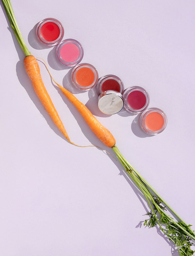 Apply balm directly to the cheeks with a brush, gently dabbing and blending the edges; repeat for deeper colour; you can also dab with a brush or fingers to eyelids and blend in for fun colour; for lips, apply with a brush over the top and bottom lip and rub lips together.