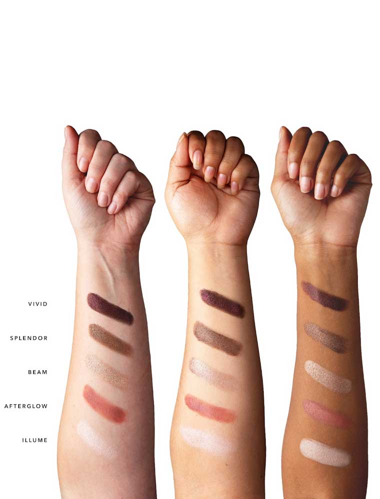 Use Berry Naked Palette for a complete makeup look! Dust Afterglow blush onto the apple of each cheek. Follow by gently brushing Illume onto cheekbone, bridge of nose, and anywhere else you want to glow. Finish by applying stunning eye shadows to lids, brow bone, and waterline as desired.