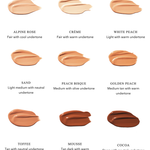 The 100% Pure Healthy Foundation is the original natural foundation with a complexion-perfecting formulation of superfruits, vitamins and minerals designed for full coverage with a lightweight feel. This creamy liquid foundation features antioxidant-rich Goji Berry, Acai, Coffee Cherry, Elderberry and Mangosteen that help nourish skin whilst soothing Aloe helps calm and condition the complexion. Enhanced with oil-absorbing Rice Powder that helps control shine and balance excess oil whilst delivering 100% opacity and a pristine matte finish for soft, velvety smooth skin. Ideal for absolute full coverage of dark circles or hyperpigmentation with controlled shine for normal, oily and combination skin types. Available in nine versatile shades: Alpine Rose (fair with cool undertone), Créme (fair with warm undertone), White Peach (light with warm undertone), Sand (light medium with neutral undertone), Peach Bisque (medium with olive undertone), Golden Peach (medium tan with warm undertone), Toffee (tan with neutral undertone), Mousse (tan dark with warm undertone), and Cocoa (deep with neutral undertone). Made in the USA and vegan.