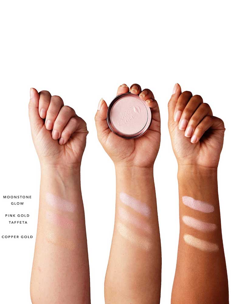 The 100% Pure Gemmed Luminizer is a stunning powder formulation designed to create glowing, luminous skin with light-reflecting minerals and gemstones. This finely milled pressed powder features Sunstone, Moonstone, Pyrite, Australian Opal and Labradorite that help create natural sparkle and shimmer whilst Rice powder and Cacao Butter help soften and condition skin. Enhanced with Avocado and Cocoa Butters that help nourish skin whilst delivering a radiant, natural glow. The superfine powder blends effortlessly to illuminate and highlight facial features with a luminous finish that enhances your natural radiance. Available in three gorgeous shades: Pink Gold Taffeta (neutral pink with pearl and gold undertones), Copper Gold (warm peachy gold with yellow undertones), and Moonstone Glow (cool icy pink with purple undertones). Made in the USA and vegan.