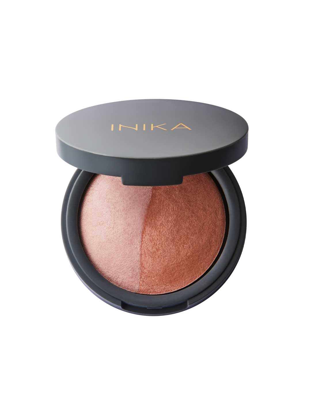 1. Create a flawless base with your favourite INIKA Foundation. Apply Baked Blush Duo on top as per the following steps.