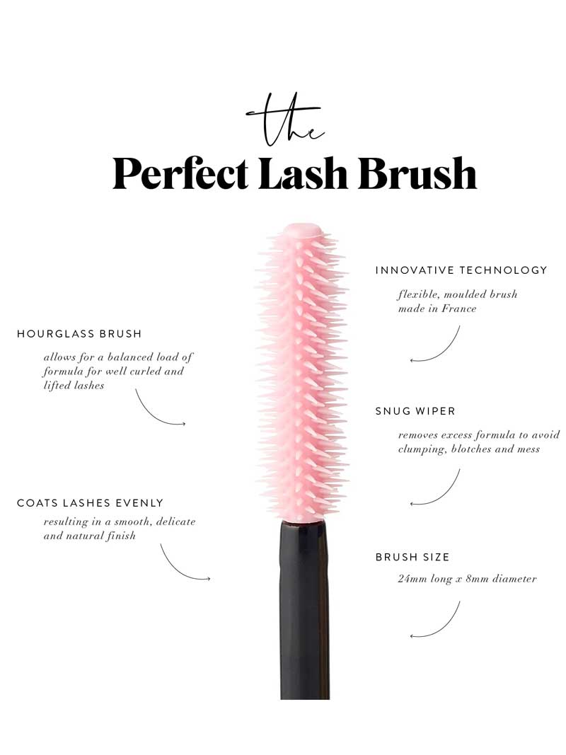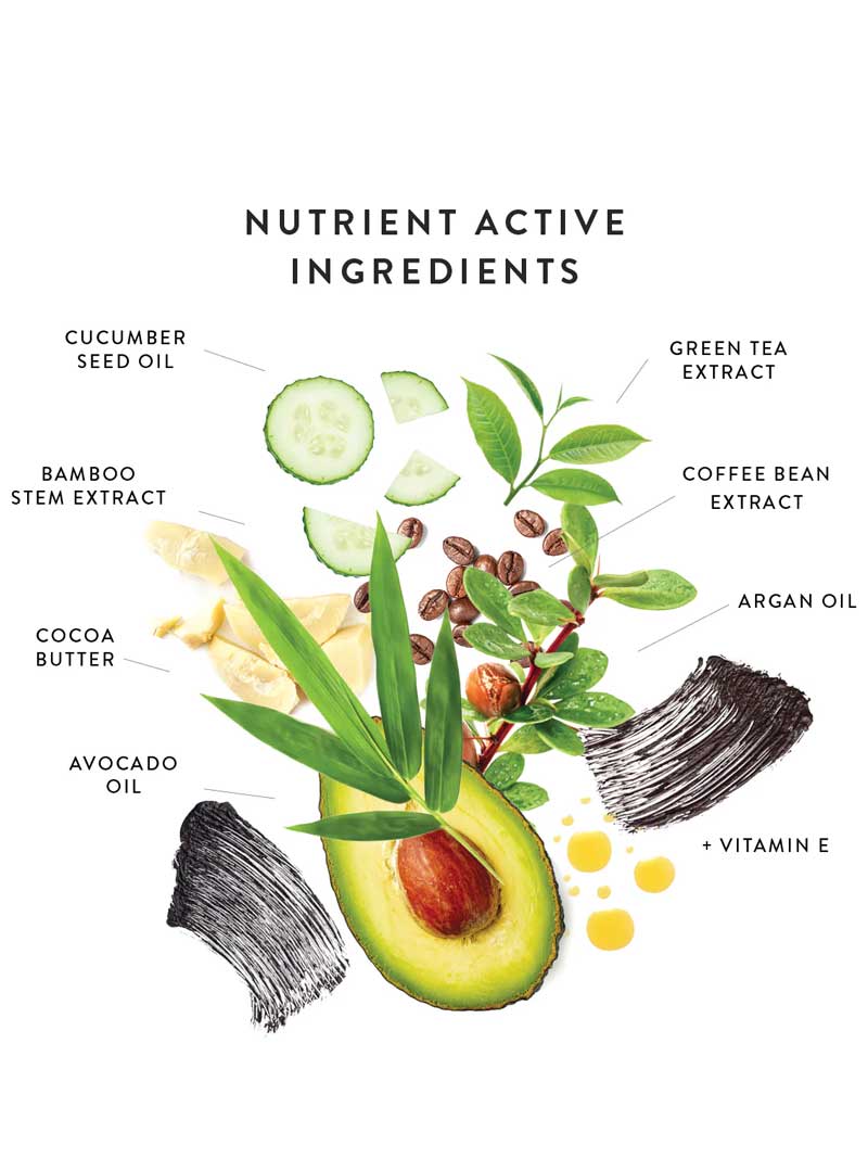 Apply Lash Nourish Mascara brush to root end of lashes and wiggle up to the top. Dip and repeat for bottom lashes. Add a second coat if desired.
