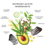 Aqua (Water), Copernicia Cerifera (Carnauba) Cera, Coco-Caprylate/Caprate, Pullulan, Glycerin (Vegetable Glycerin), Glyceryl Stearate SE, Stearic Acid, Cellulose, Shorea Robusta Resin, Sorbitol, Kaolin, Propanediol, Helianthus Annuus (Sunflower) Seed Oil, Lecithin (Soy), Phenethyl Alcohol, Tocopherol (Vitamin E), Cucumis Sativus (Cucumber) Seed Oil, Argania Spinosa (Argan) Kernel Oil, Persea Gratissima (Avocado) Oil, Bambusa Arundinacea (Bamboo) Stem Extract, Camellia Sinensis (Green Tea) Leaf Extract, Coffea Arabica (Coffee) Seed Extract, Theobroma Cacao (Cocoa) Seed Butter, Glycyrrhiza Glabra (Licorice) Root Extract, Acacia Senegal Gum, Trehalose, Sodium Hydroxide, Caprylhydroxamic Acid. May Contain (+/-): CI 77019 (Mica), CI 77491, CI 77492, CI 77499 (Iron Oxides).