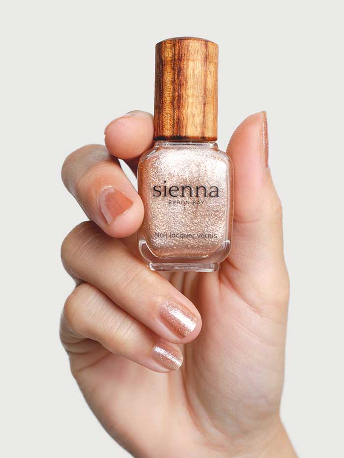 Sienna Byron Bay nail polishes are made with a natural plant-derived formula created from sugarcane, cassava, cotton and corn. Beautifully finished with sustainably sourced timber caps.