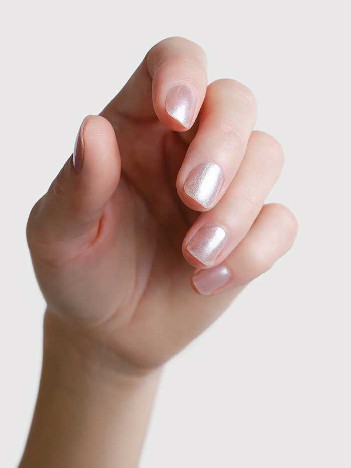 The Sienna Byron Bay Glimmer is a soft alabaster shimmer with a touch of holographic sparkle for a naturally radiant glow. Light, graceful and endlessly versatile, this refined shade adds subtle elevation to any manicure, bringing quiet elegance with every stroke.
