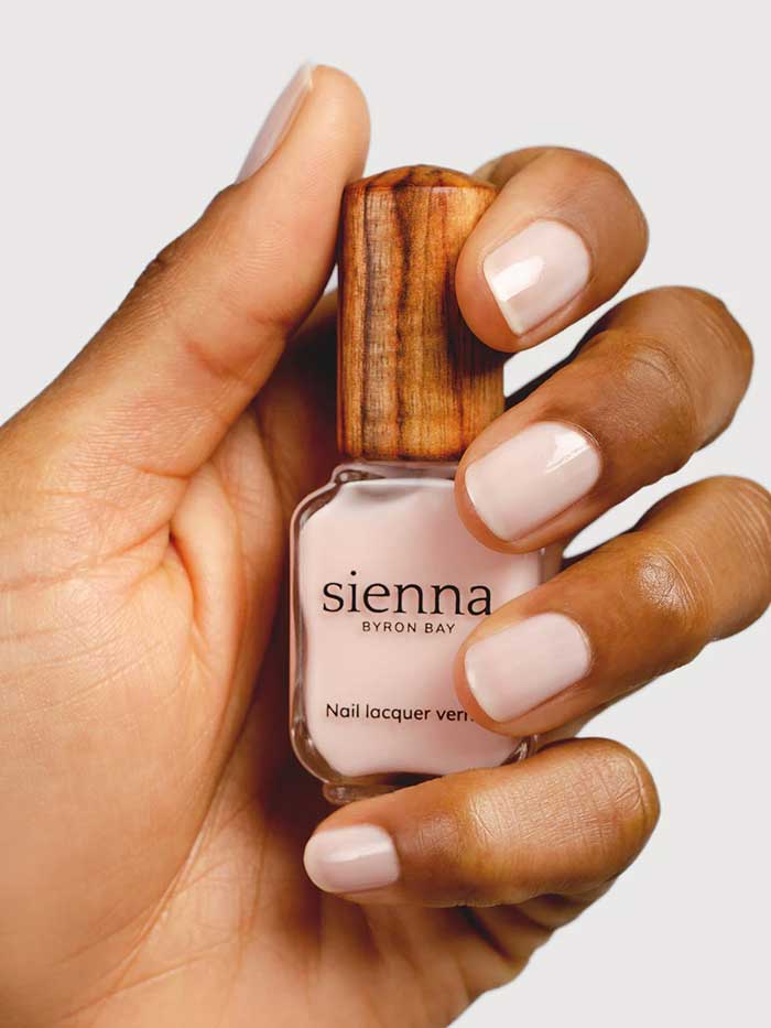 Sienna Byron Bay nail polishes are made with a natural plant-derived formula created from sugarcane, cassava, cotton and corn. Beautifully finished with sustainably sourced timber caps.