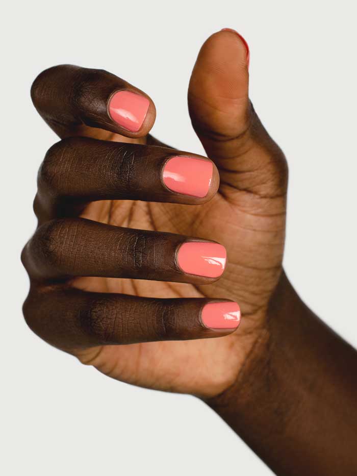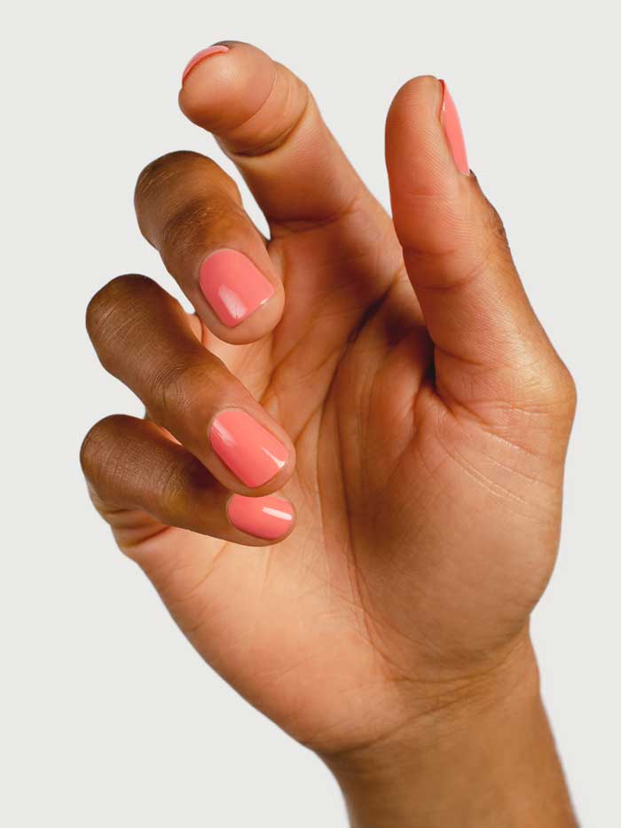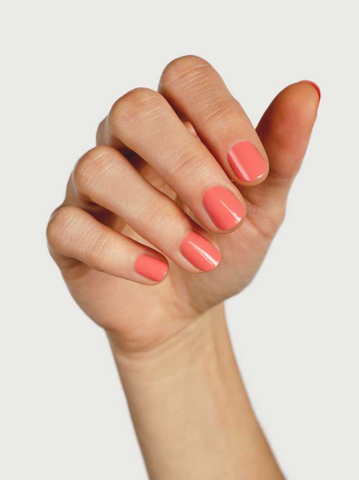 - Peachy pink nail colour